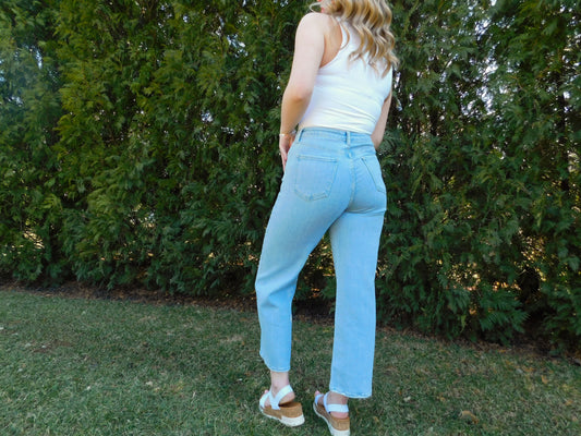 Light Wash High-Rise Cargo Pocket Wide Leg Jean