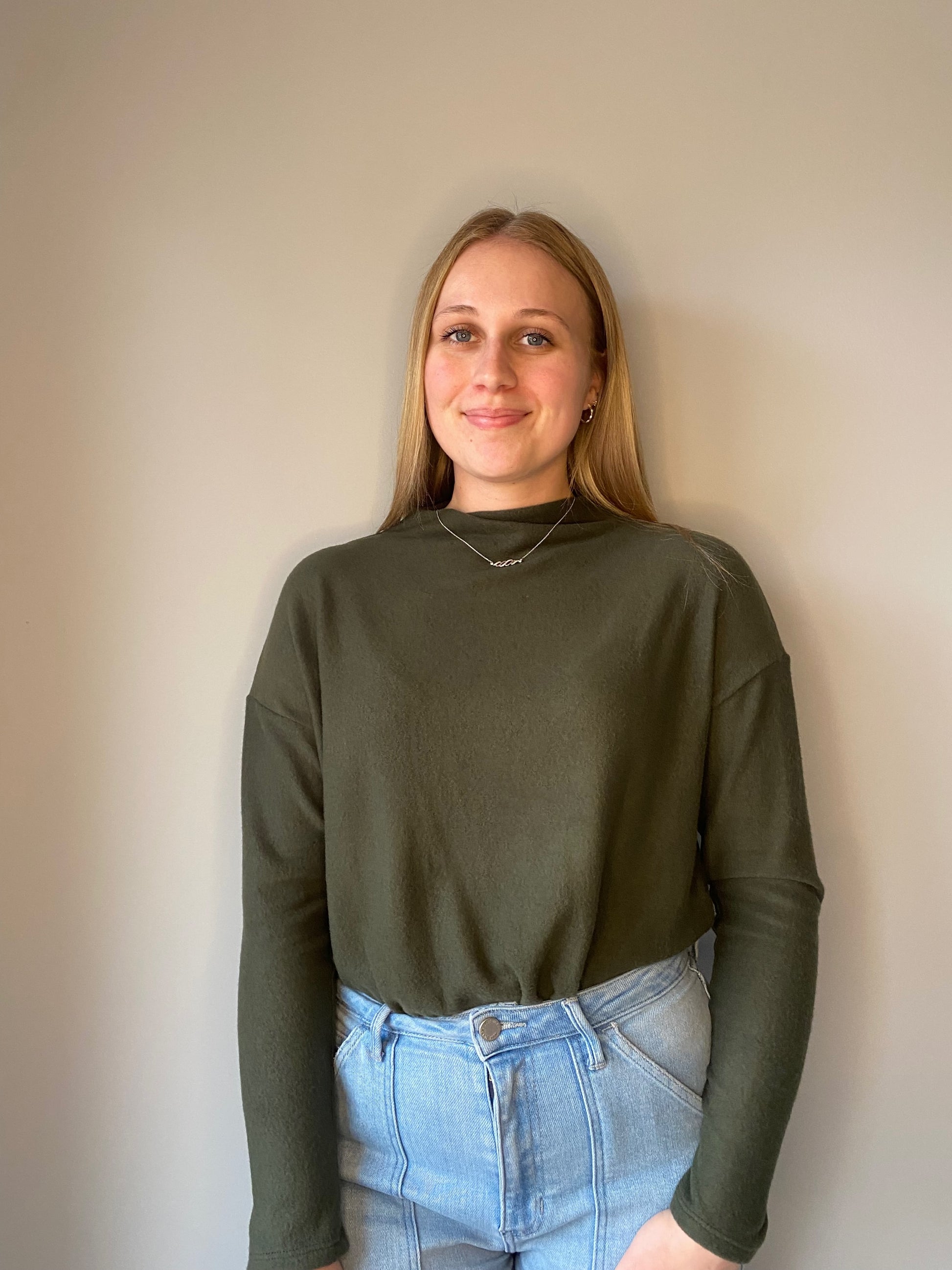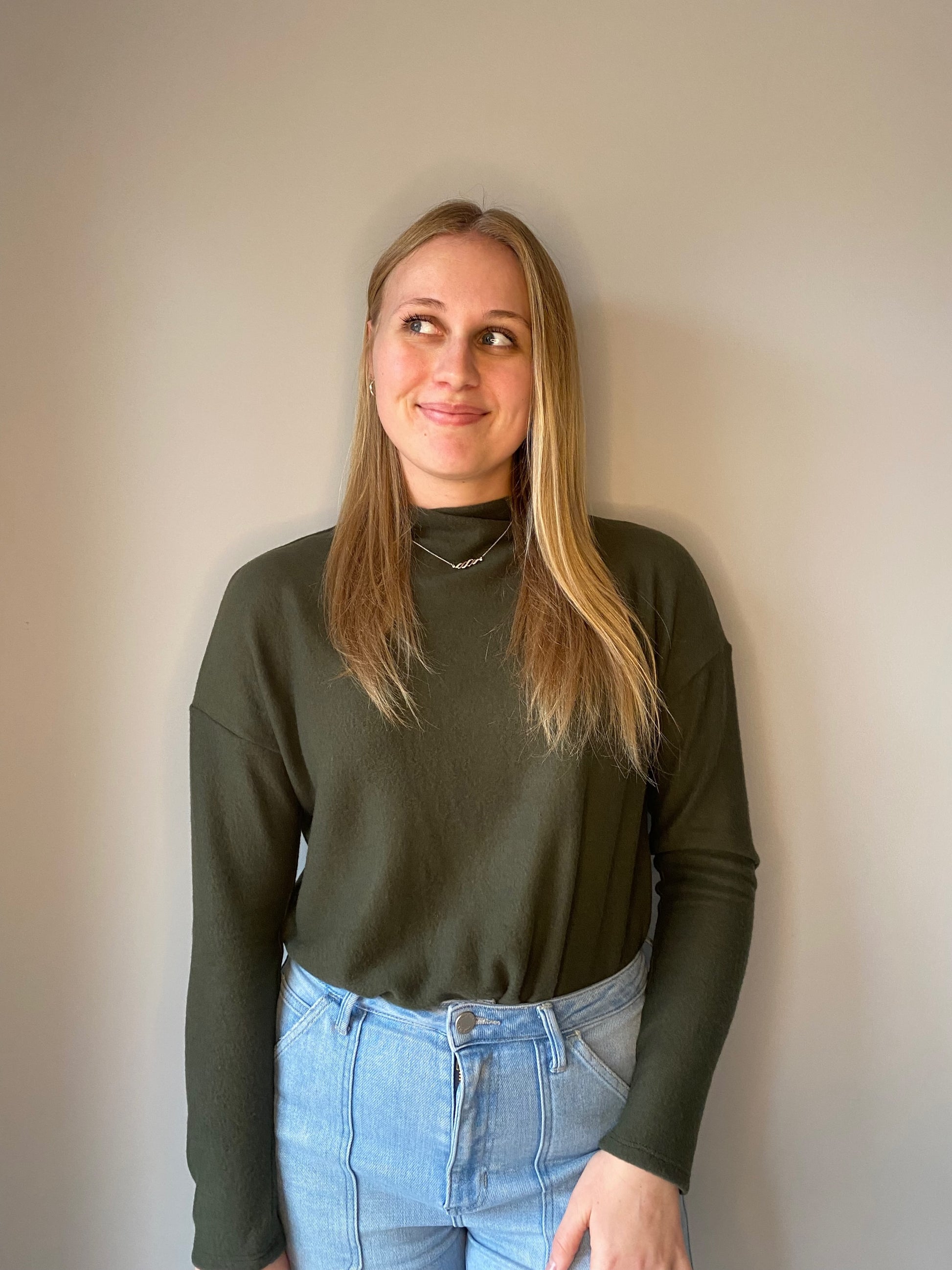This cute mock neck bodysuit is SUPER SOFT! Wear it with jeans or a skirt to make a casual outfit. Layer it with a puffer vest or sweater to dress it up for any holiday party! This pairs so well with our High Waisted Jeans and our Cropped Puffer Vest!!