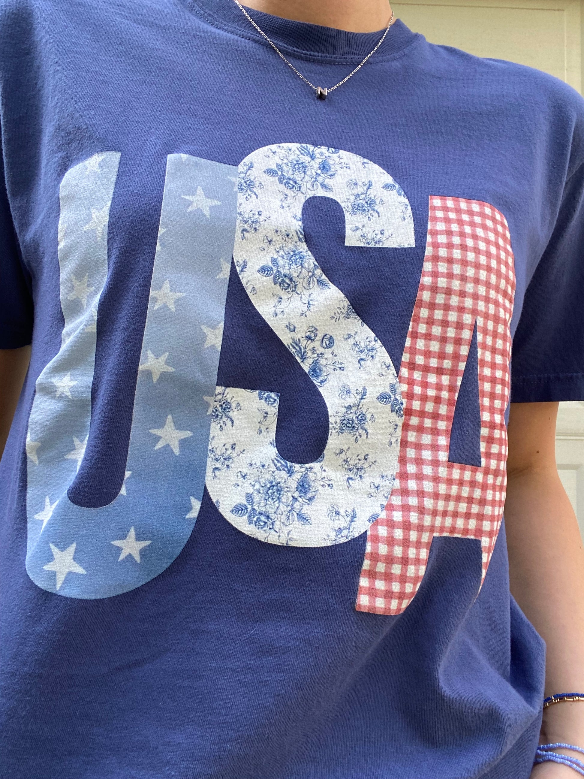 This adorable USA tee is perfect for a cute 4th of July outfit! This tee is SO comfy and soft!